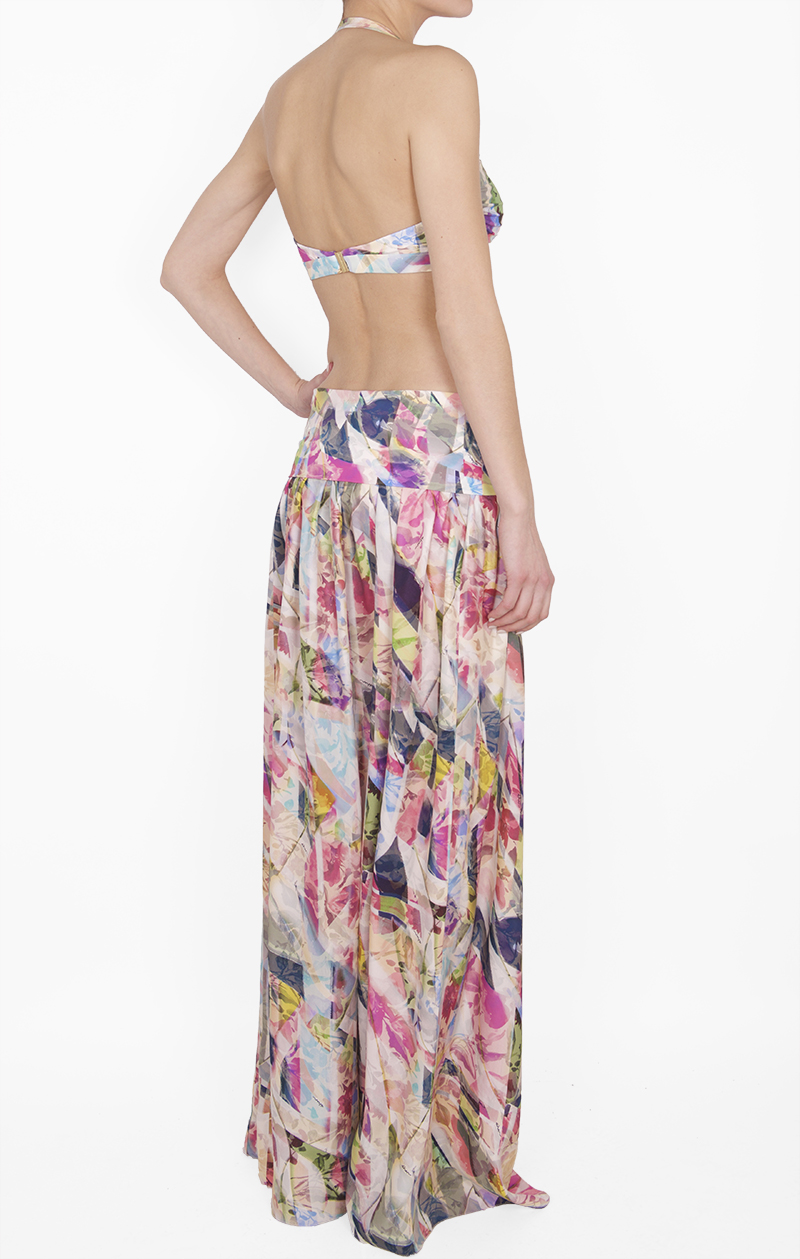 This lovely maxi dress can also be worn as a skirt. You can wear it over a bathing suit or on its own. It is perfect for a day at the beach and yet its elegant style is also great for wining and dining. Made in Canada with exclusive Italian material.