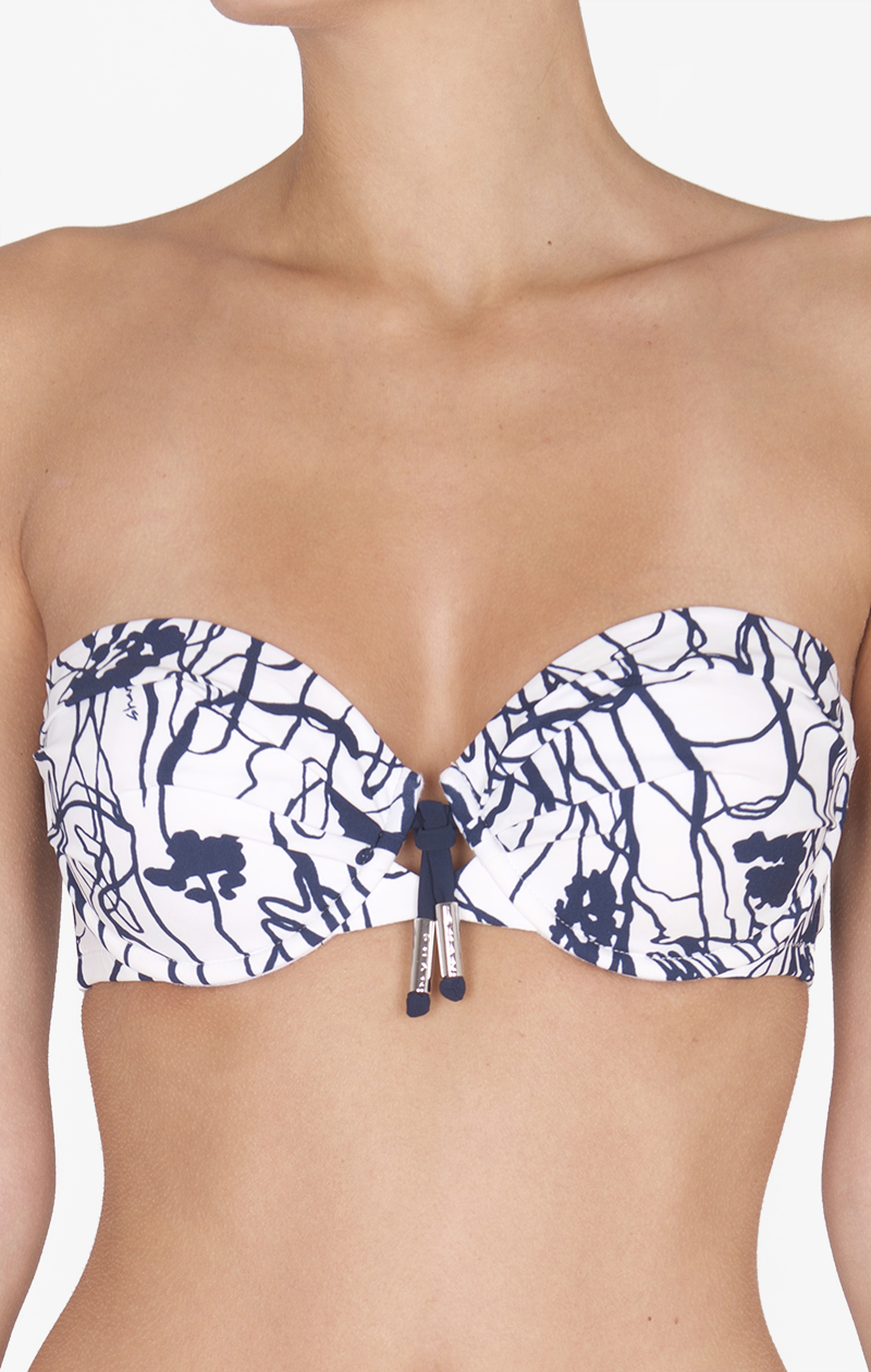 This elegant bandeau-style balconnet lined with light foams offers the ultimate support with its underwire and adjustable straps. Whether you wear this chic top with or without its removable straps a silicon band will keep it in place. This internationally acclaimed bikini top is made in Canada. It is a must-have for any resort wear wardrobe.