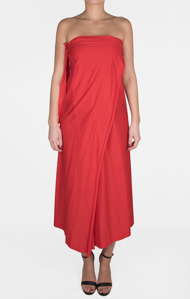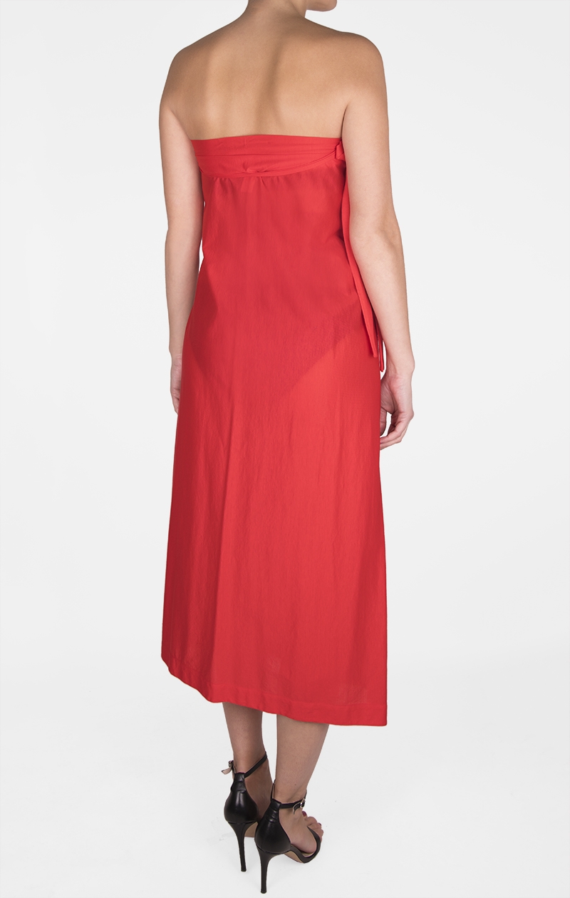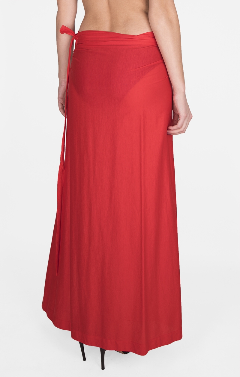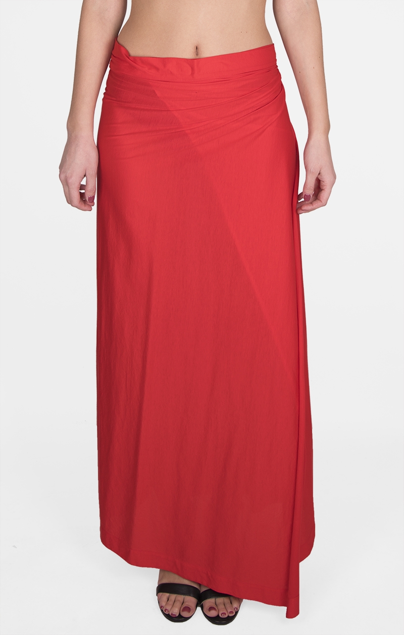 This lovely long skirt can also double as a dress. You can wear it over a bathing suit or on its own. It is perfect for a day at the beach and yet its elegant style is also great for dining at the restaurant. Made in Canada with exclusive Italian material.