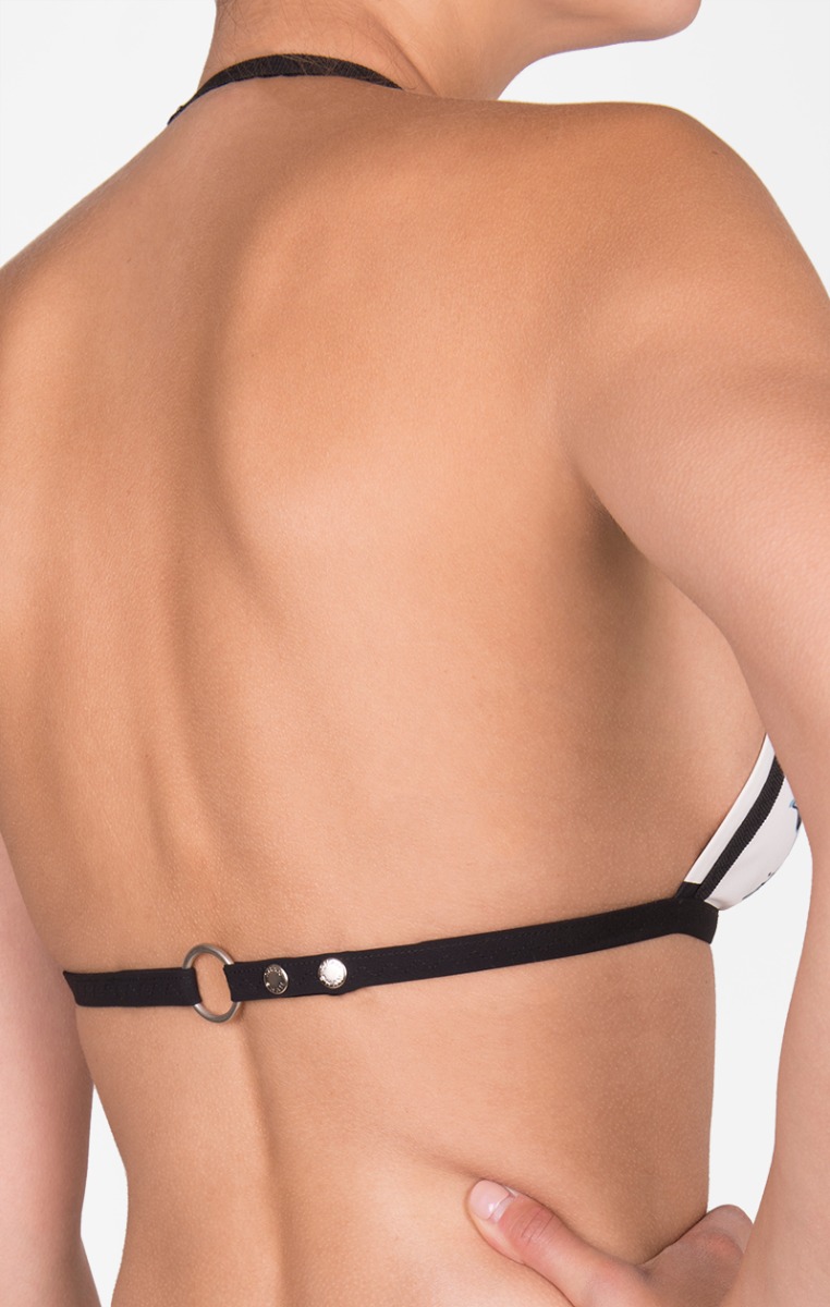 This classic triangle bikini top can be adjusted to your desired comfort due to its snap back ties