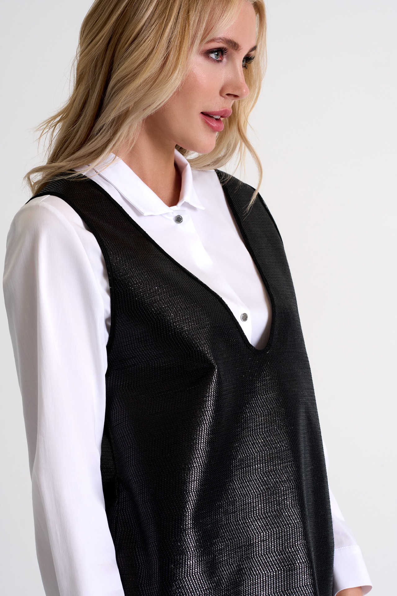 Discover our luxurious and sparkling pinafore dress, perfect for layering over a blouse dress for a glamorous and radiant look.