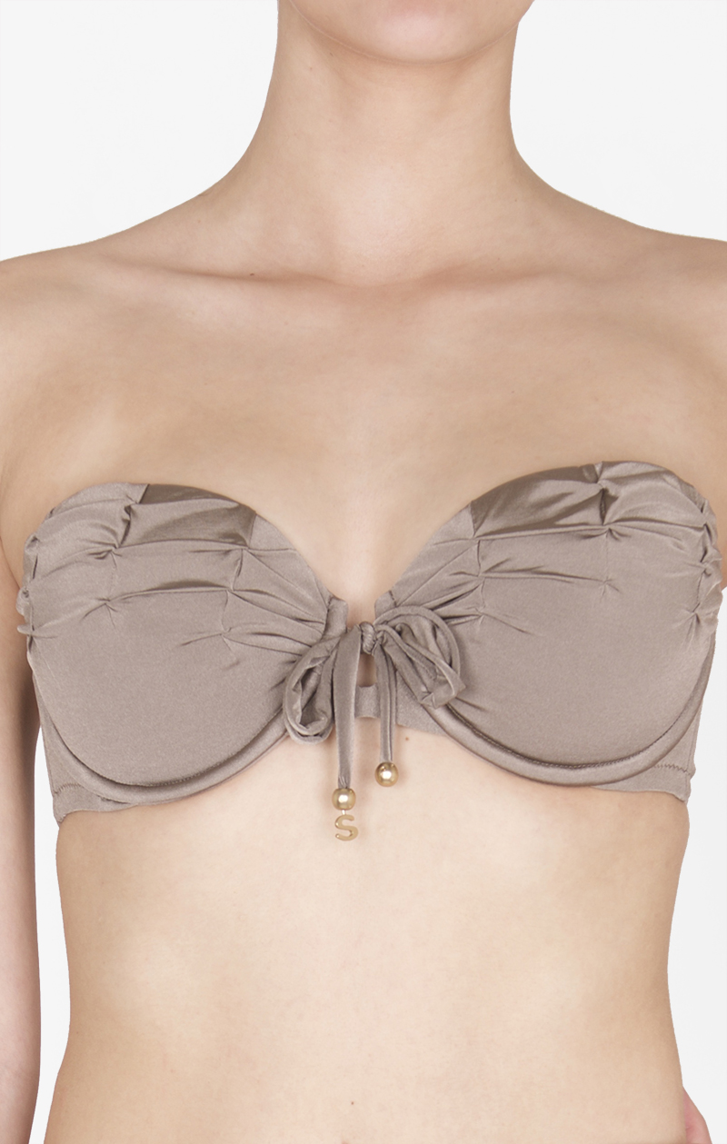 This elegant bandeau-style balconnet lined with light foams offers the ultimate support with its underwire and adjustable strap. Whether you wear this chic top with or without its removable strap a silicon band will keep it in place. This internationally acclaimed bikini top is made in Canada. It is a must-have for any resort wear wardrobe.