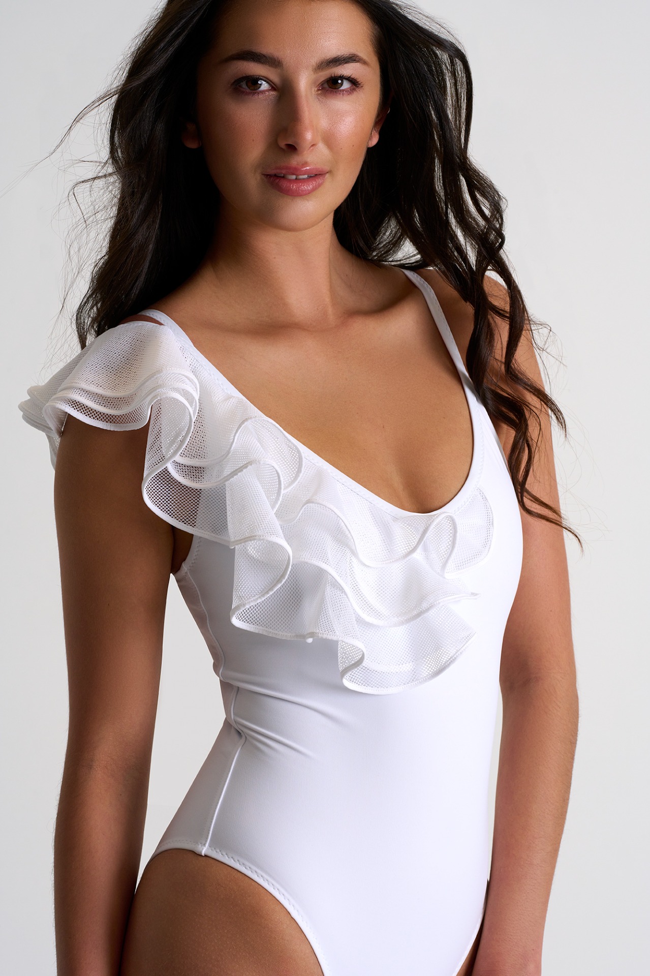 Elegant one-piece with a ruffle twist for a perfect combination of comfort and style.