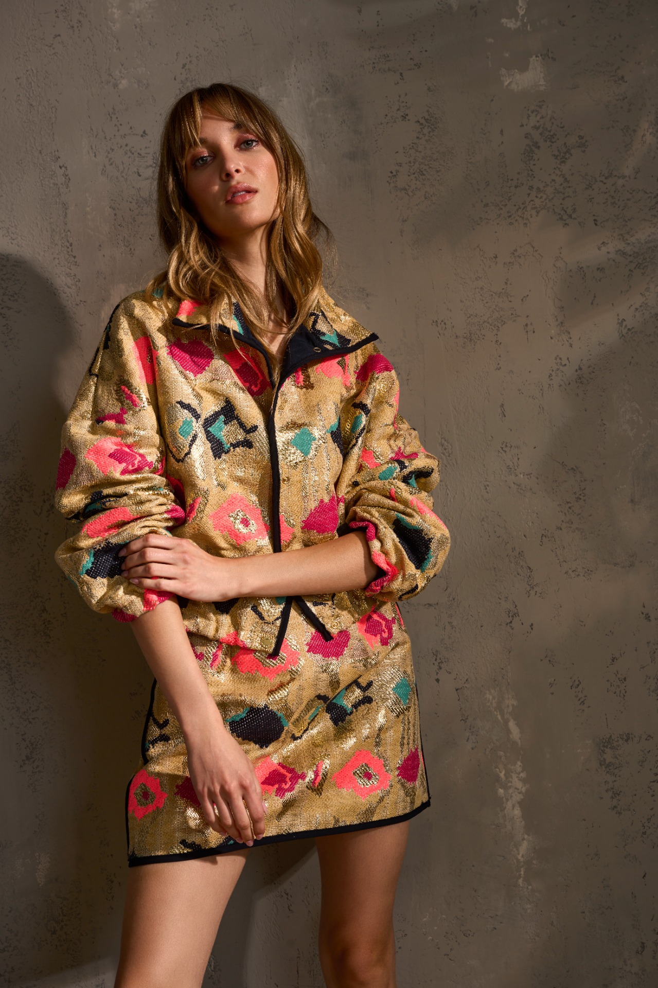 Meticulously crafted from a one-of-a-kind jacquard fabric developed exclusively for the brand, these luxurious skirt are structured and designed with unique patterns. Wear them with our jacquard fabric jacket for a perfect match.