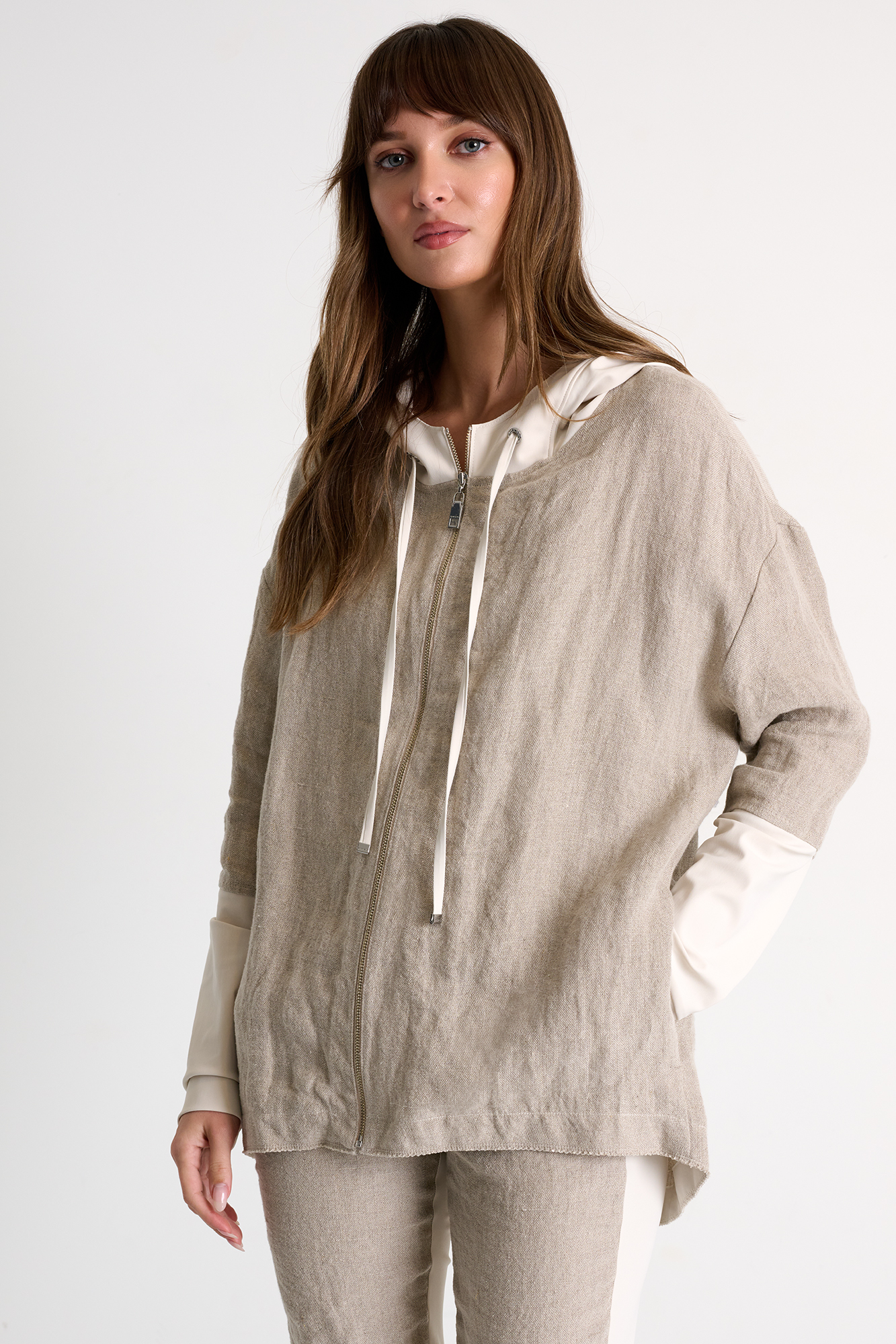 This linen vest, enhanced with touches of lycra, offers a perfect blend of textures for a harmonious result. It combines casual elegance with natural refinement.