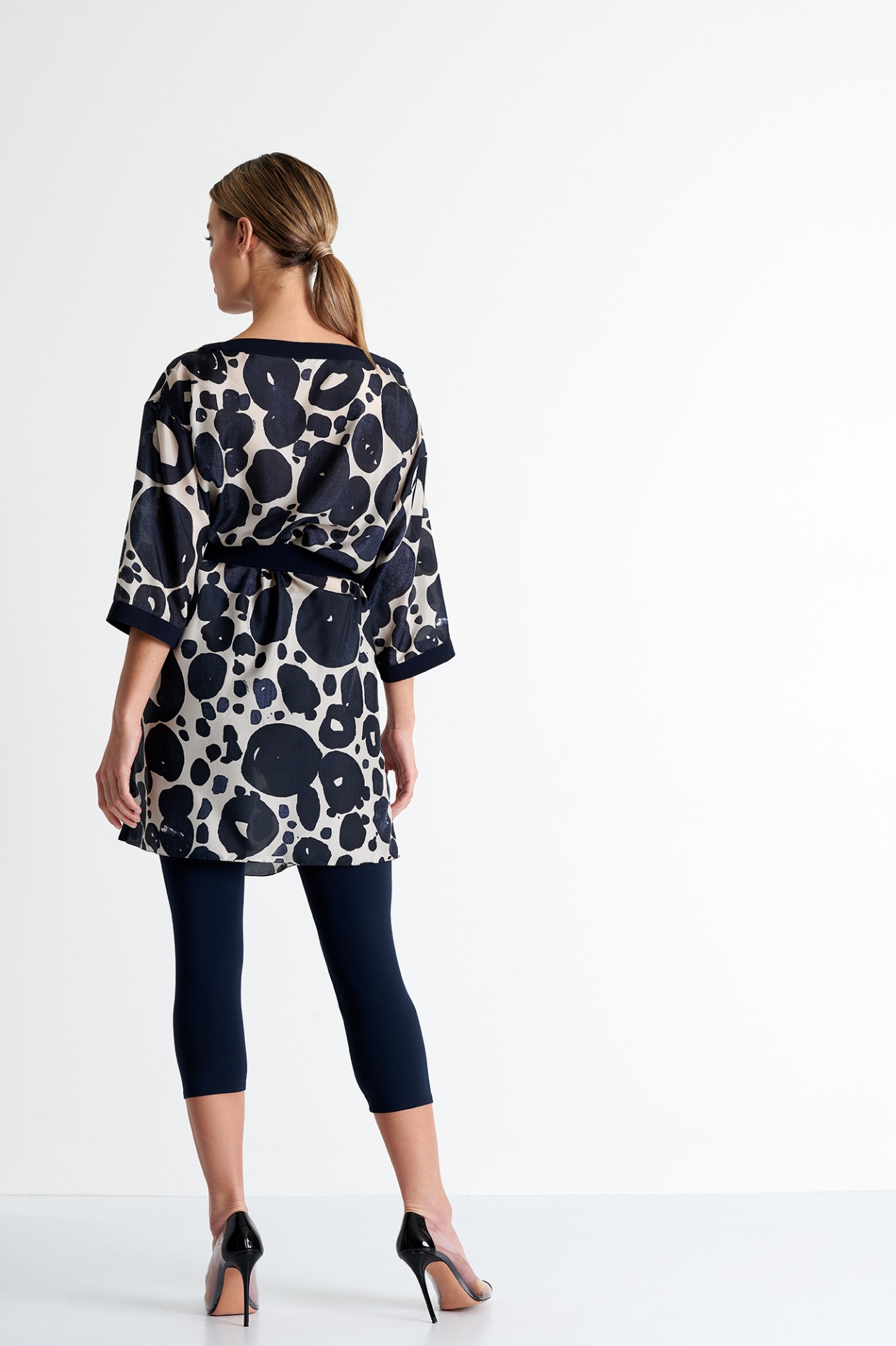 New moderne silk tunic, pairs perfectly with our navy leggings.