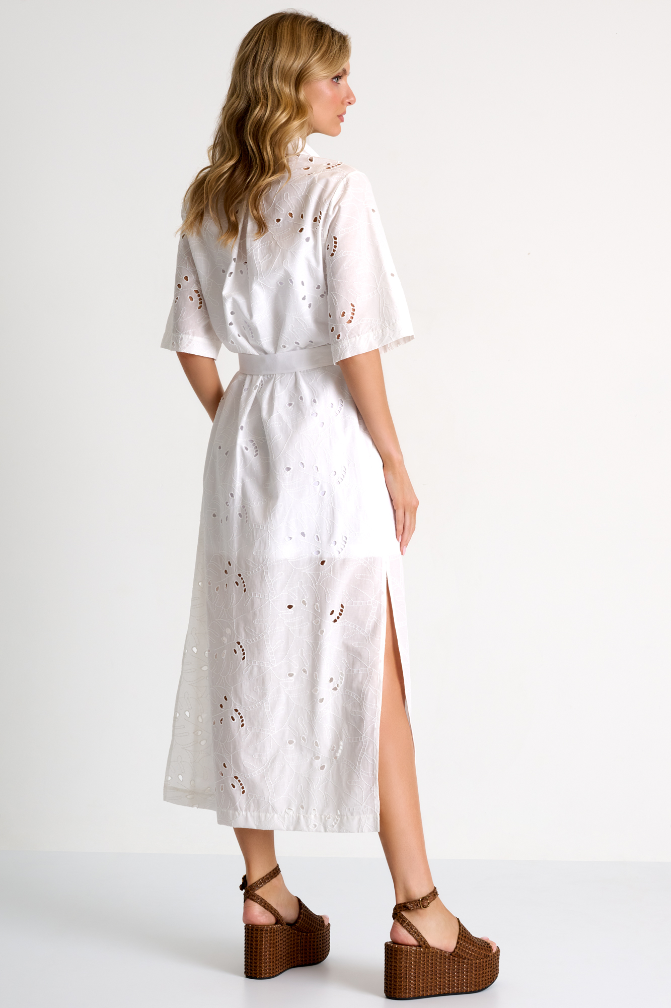 Elegant detailed lace shirt dress featuring intricate patterns for a sophisticated look. Lightweight and semi-sheer, they offer a delicate, feminine style while remaining comfortable and versatile. Perfect for layering or wearing alone for a chic, statement outfit.