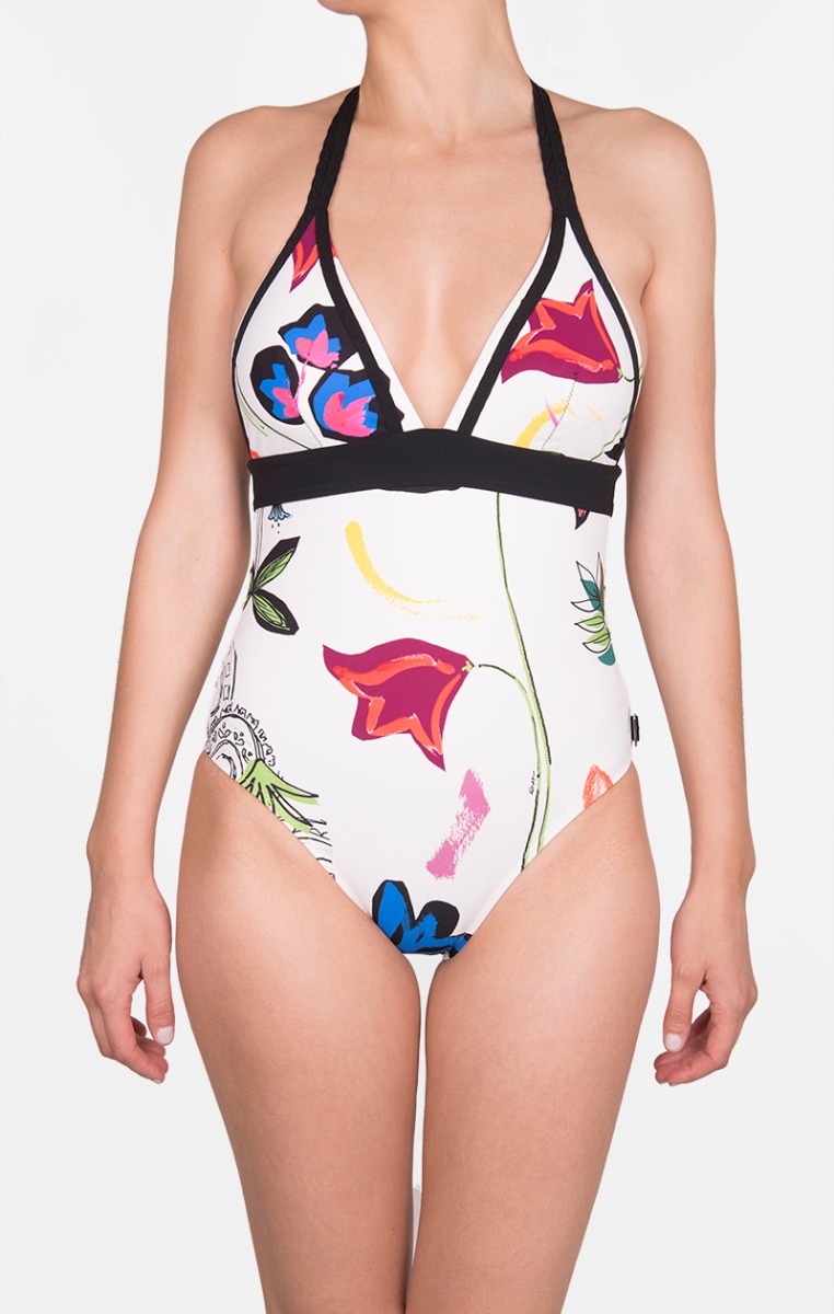 A simple elegant and feminine one-piece that is elevated by its plunging neckline and low back
