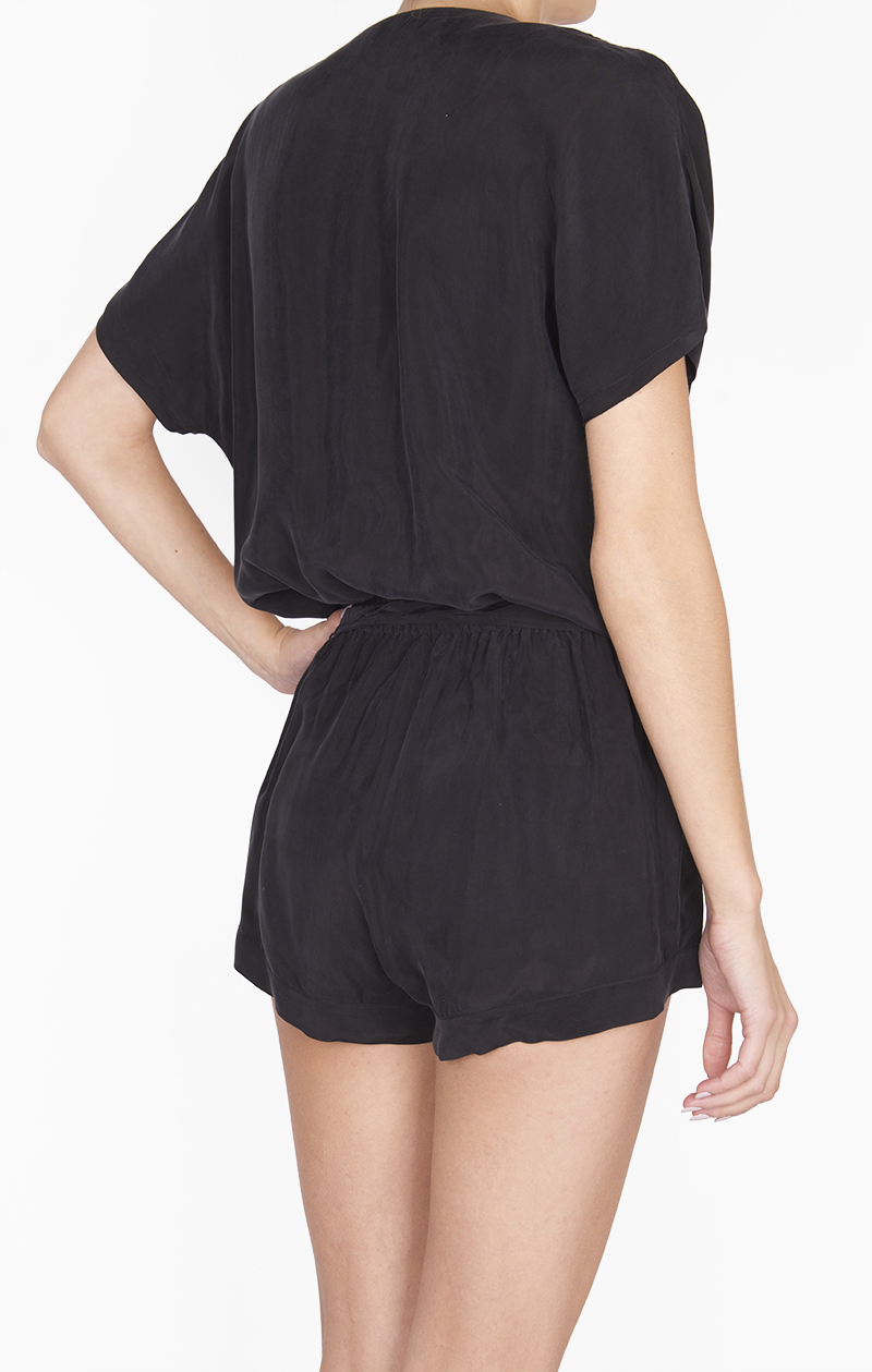 An elegant and versatile romper which can be worn anytime and anywhere: on trips in the city or at home. Made in Canada with exclusive fabrics imported from Italy.