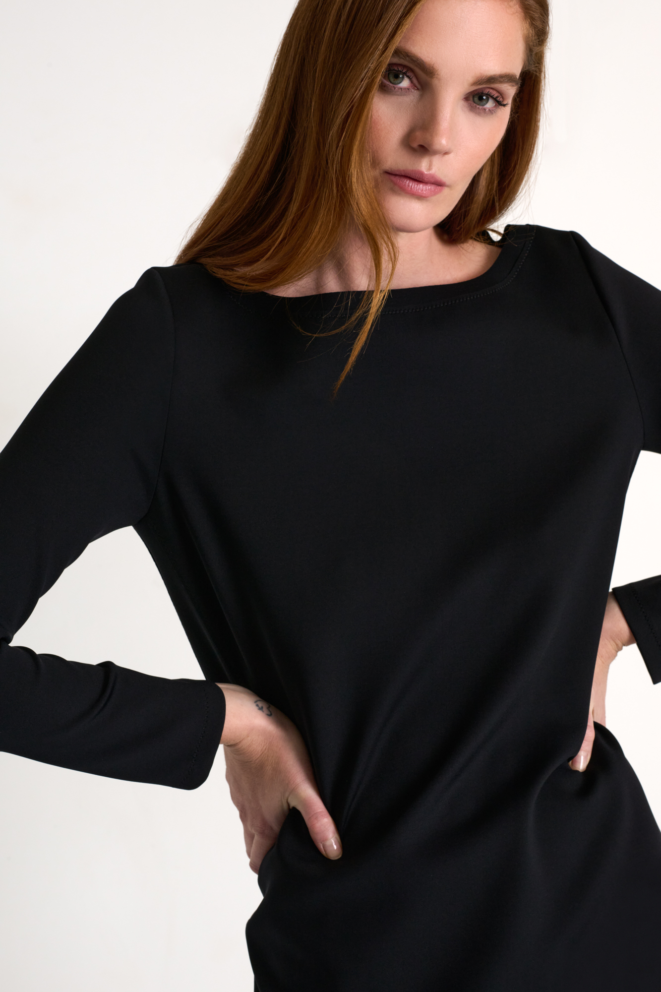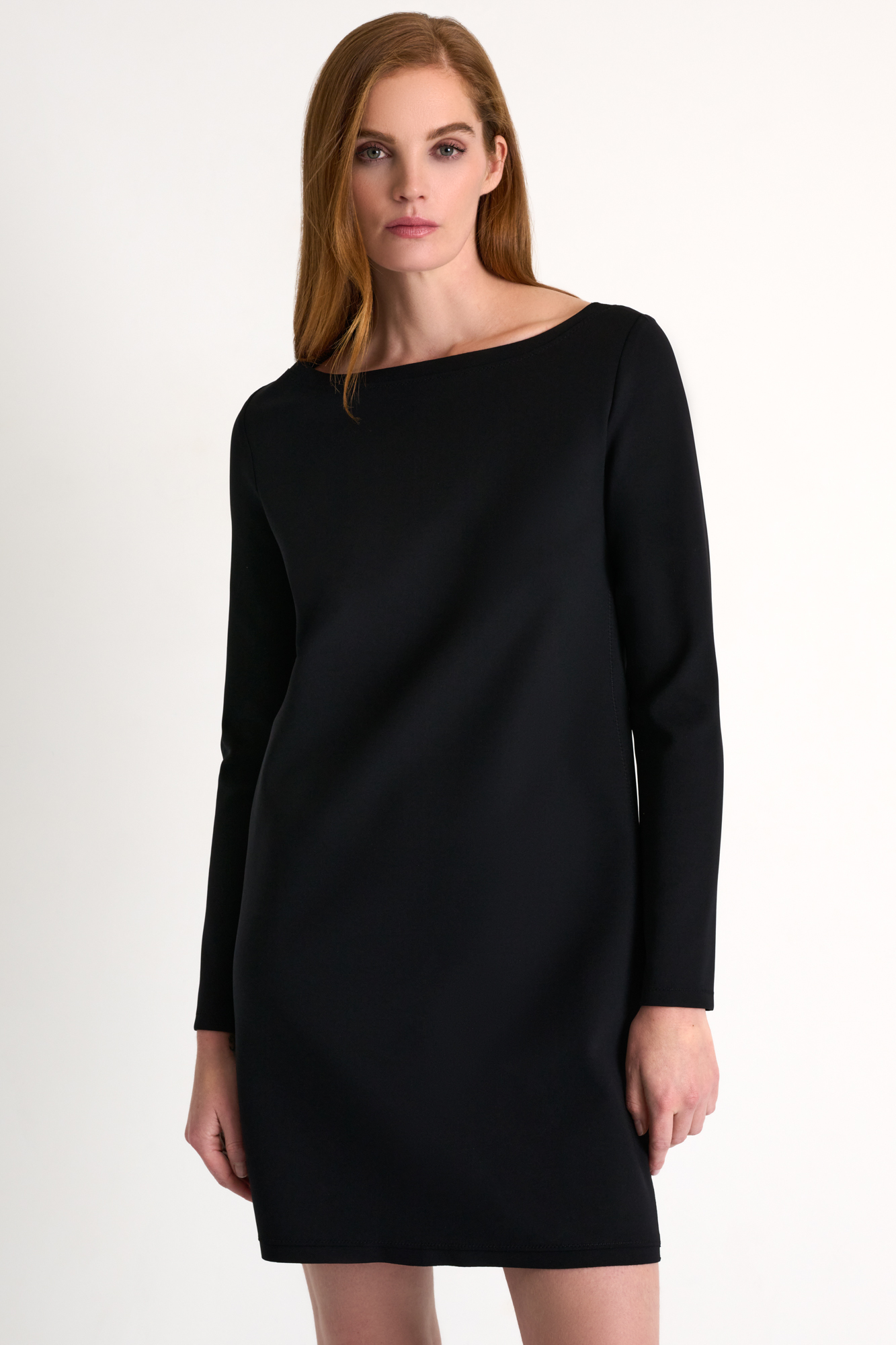 Timeless straight-cut dress featuring a clean, minimalist silhouette. Designed for versatile styling, it transitions effortlessly from day to evening wear.