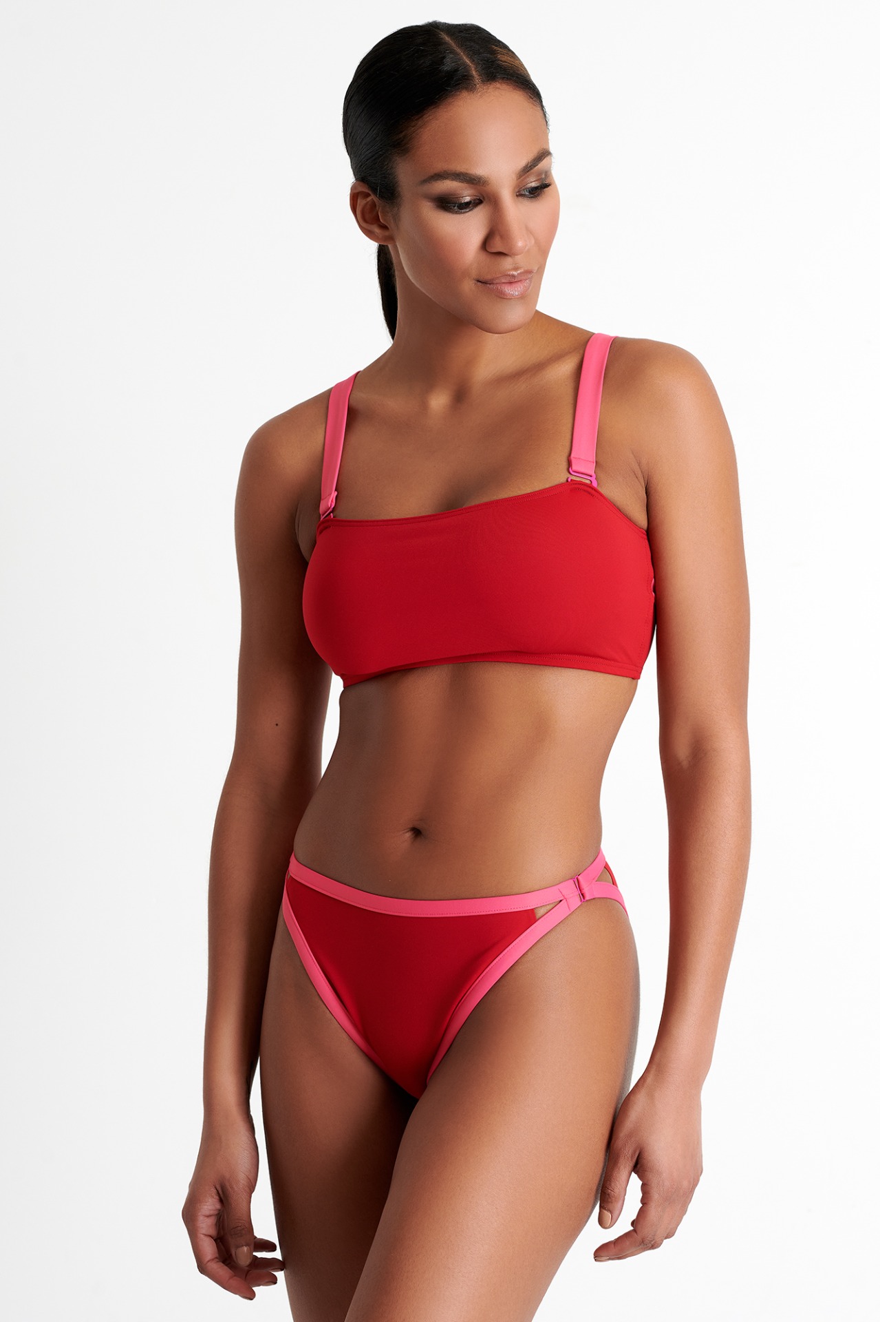 This high cut bikini bottom gives a slender effect and lengthens the feminine silhouette.