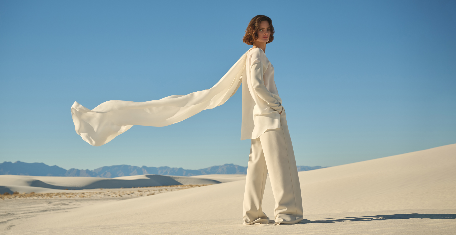 Les horizons désertiques nous accompagnent dans un voyage captivant à tra¬vers une utopie idyllique. Imprégnée d’une atmosphère sereine et surréaliste, la Collection est une ode à la simplicité, à la contemplation et à la tranquillité. Le temps semble suspendu, résonnant avec l’art du vent qui sculpte les dunes ondulantes. Le jeu de volumes et de transparences façonne des silhouettes mo¬dernes d’un charme intemporel. Composée de créations méticuleusement fab¬riquées main, la Collection présente un mélange harmonieux de tons neutres et légers. Chaque pièce reflète une attention extraordinaire aux détails, donnant vie à l’élégance et au raffinement — un hommage à l’art de la simplicité sublimée.