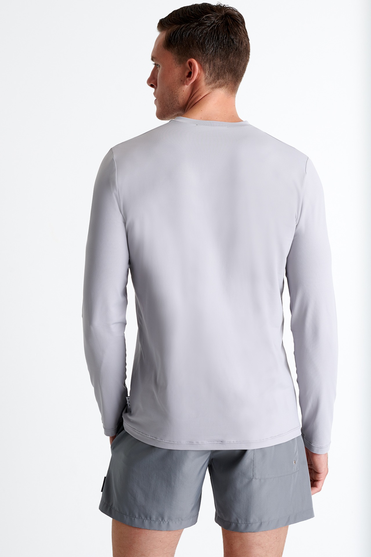 Ce haut à manches longues en microfibre avec un col en V peut être porté partout. Il peut également servir de sous-chemise ou de rashguard.