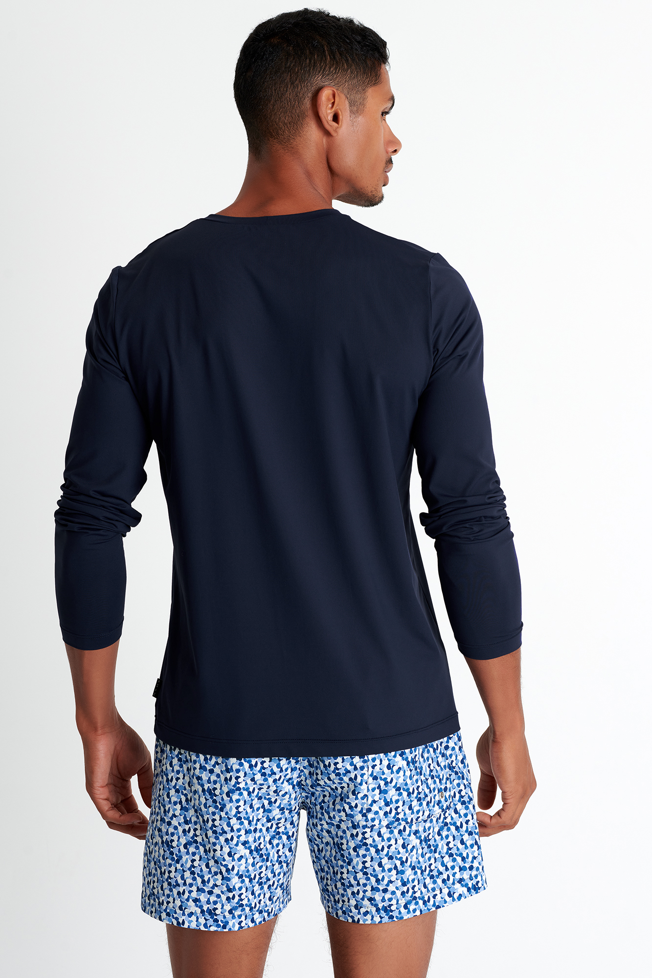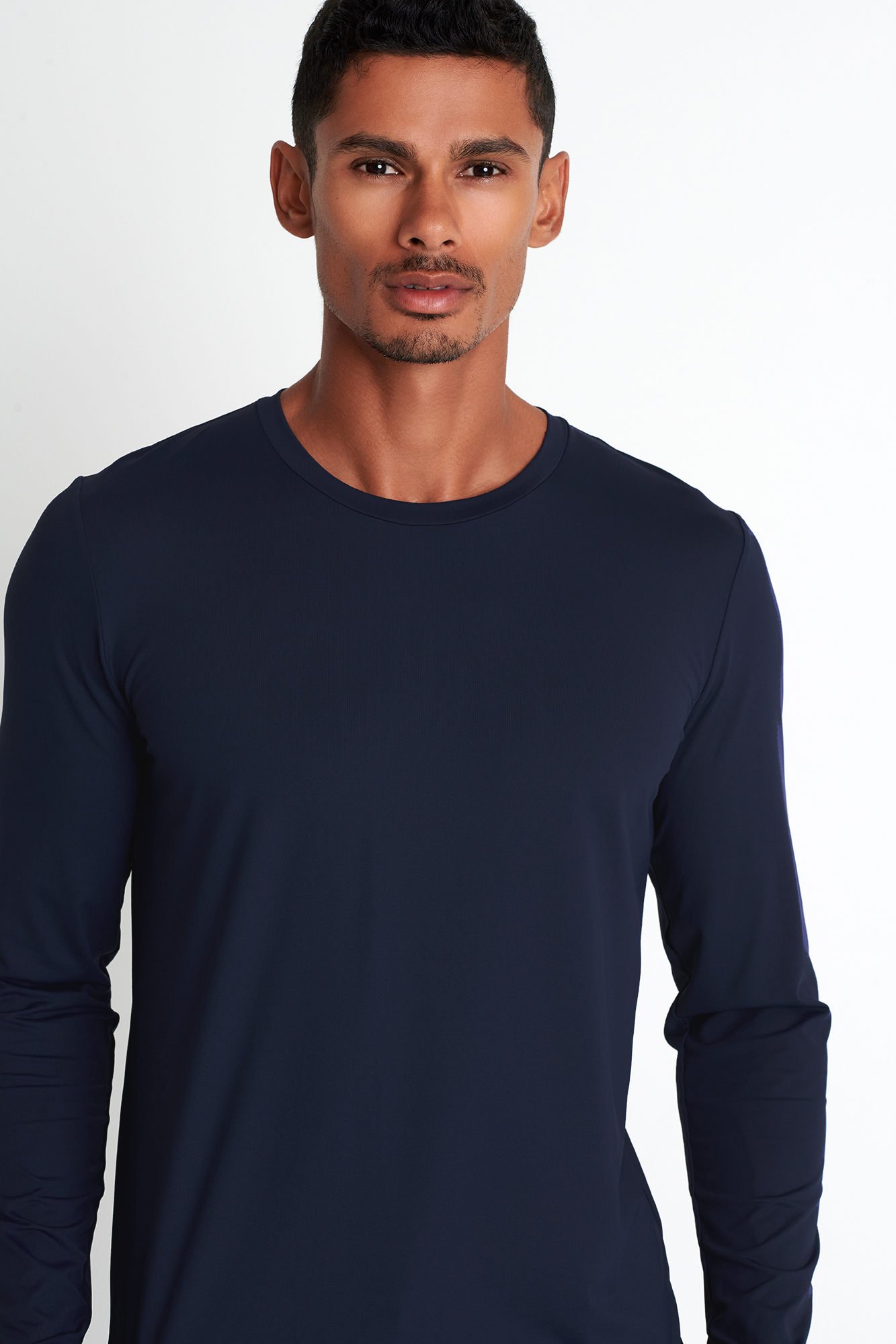 Ce haut à manches longues en microfibre avec un col rond peut être porté partout. Il peut également servir de sous-chemise ou de rashguard.