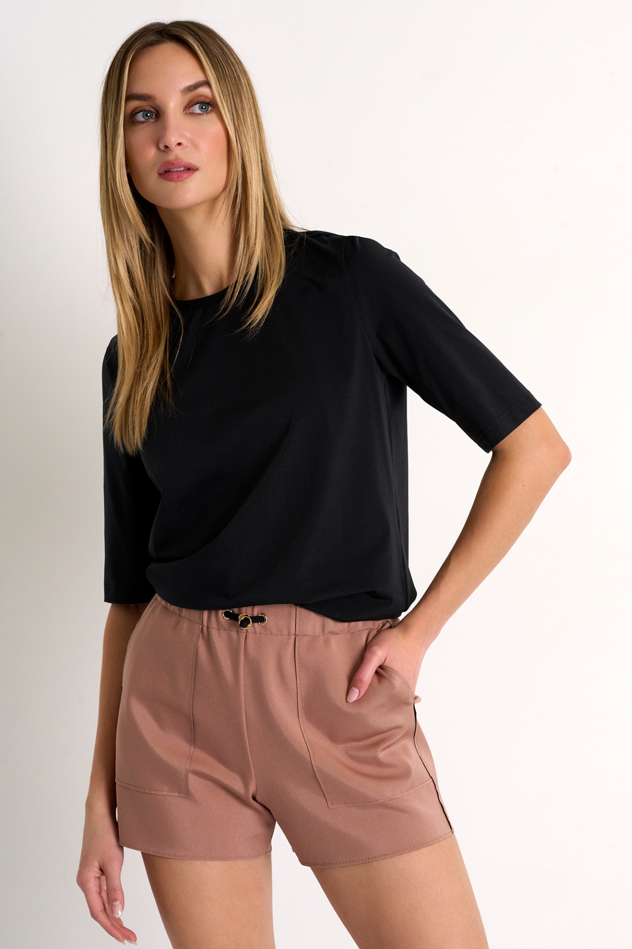 Ce short chic-décontracté offre à la fois confort et style grâce à la ceinture élastique ajustable qui cintre la taille et donne une jolie silhouette.