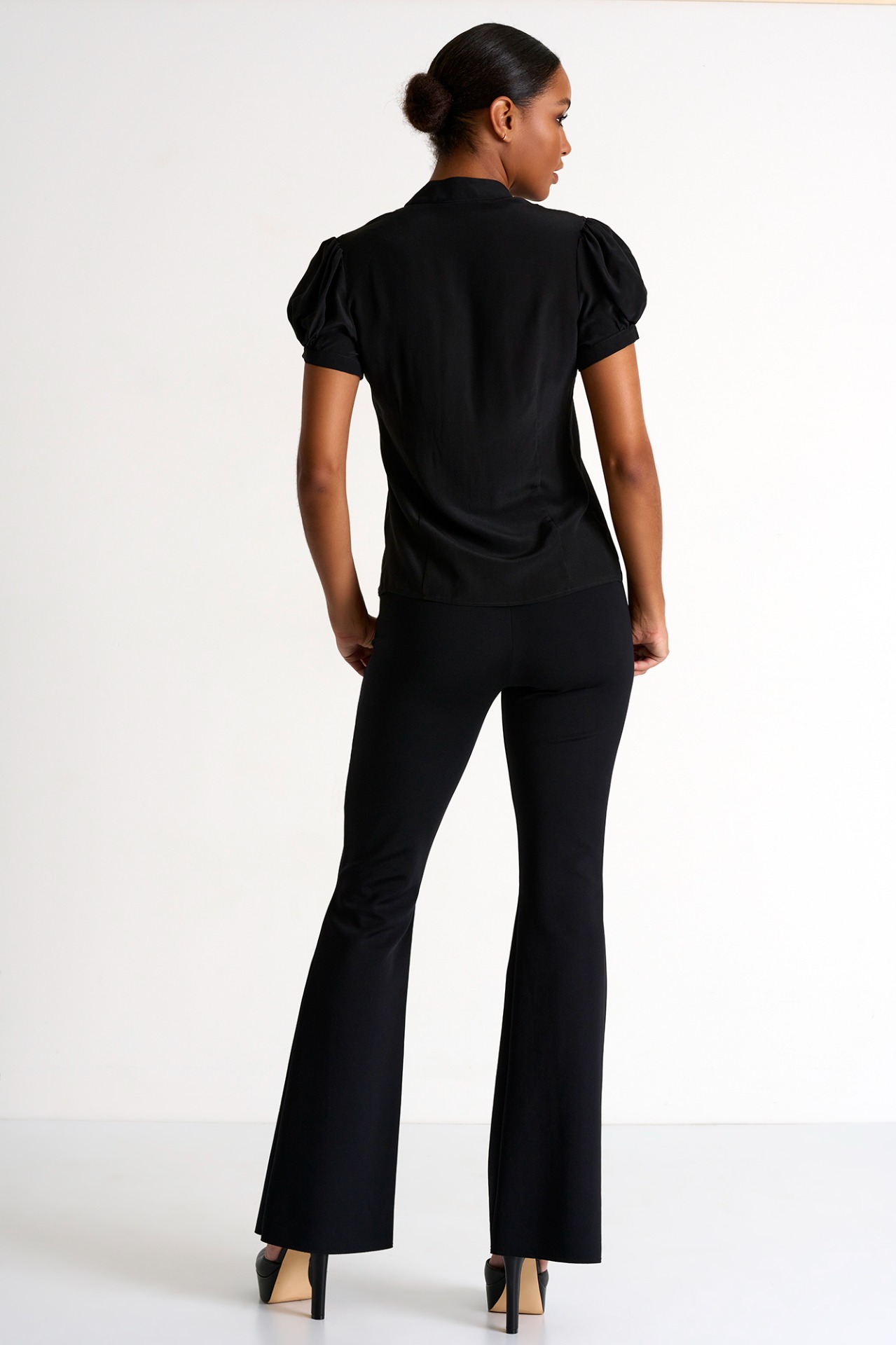 Pantalon élégant à jambes évasées à taille haute. Conçu pour allonger la silhouette avec une allure à la fois soignée et professionnelle.