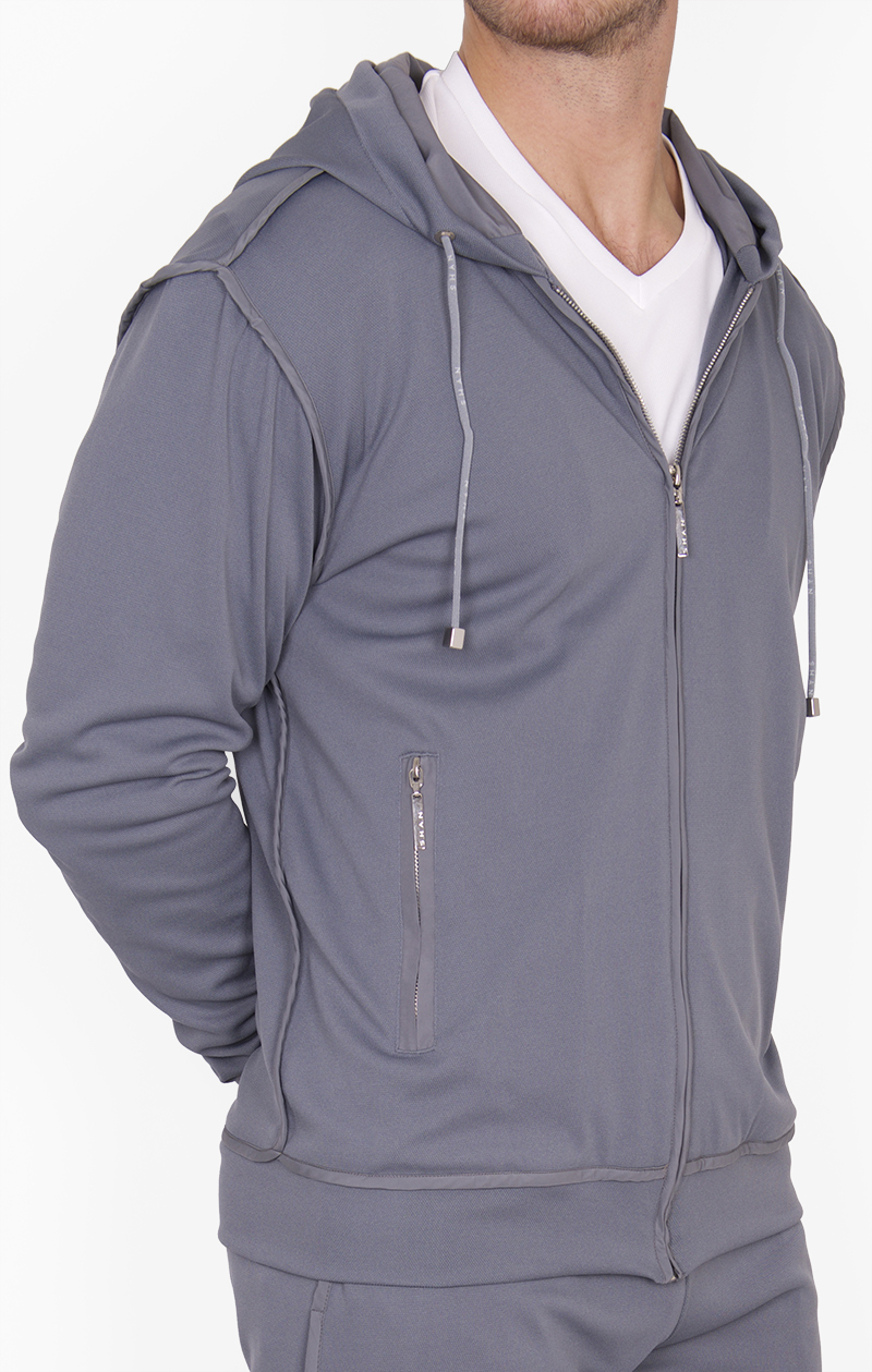 SHAN réinvente le concept de vêtement décontracté avec cette belle veste de relaxation. Un capuchon des poches avec fermeture éclair cette veste a tout d’un vêtement polyvalent. Elle se porte aussi bien avec le pantalon assorti ou des jeans. Confectionnée au Canada avec des tissus exclusifs importés d’Italie. Tailles offertes: S à XXL