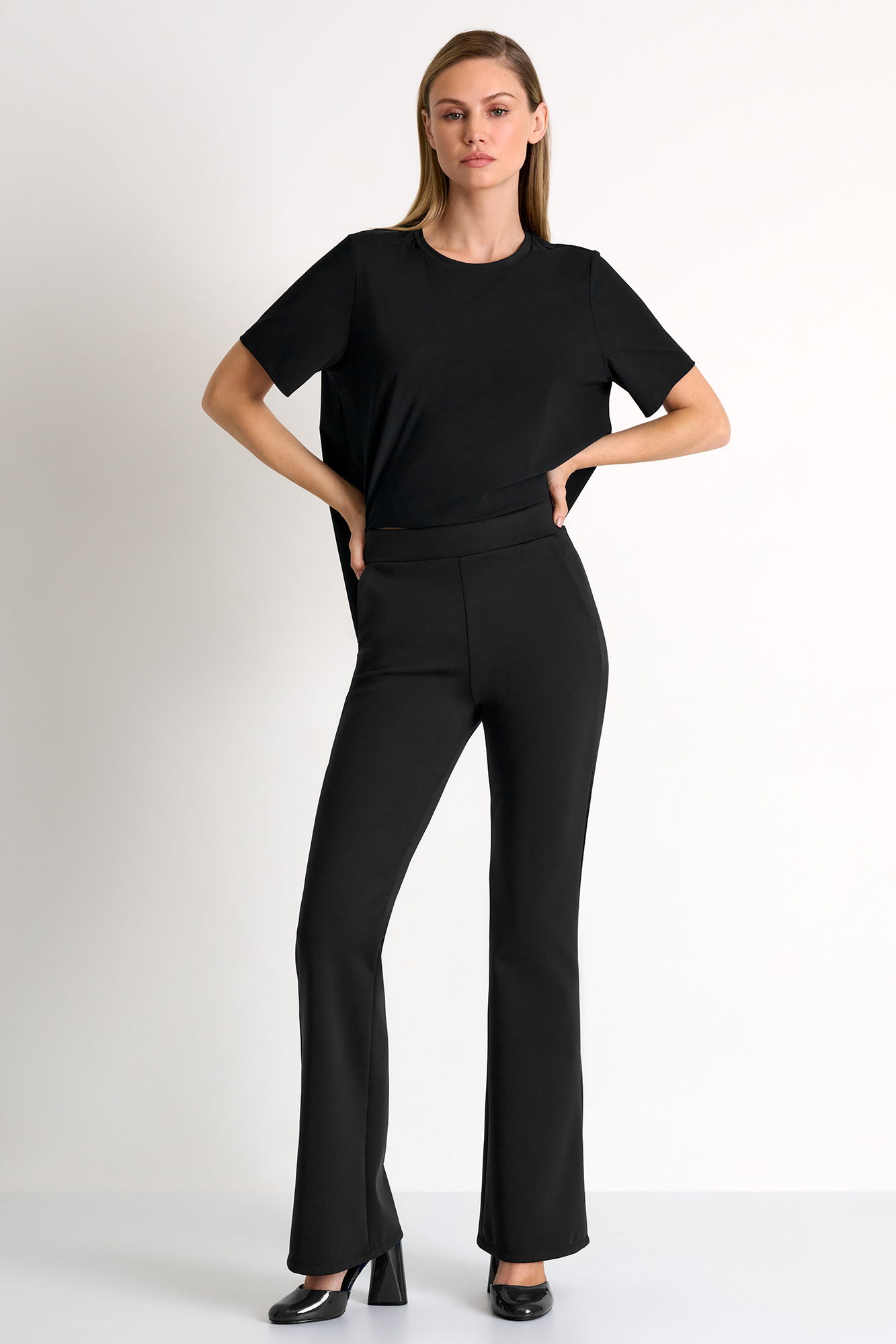 Pantalon évasé classique pour une coupe élégante. Un indispensable de votre garde-robe pour vos tenues de travail.