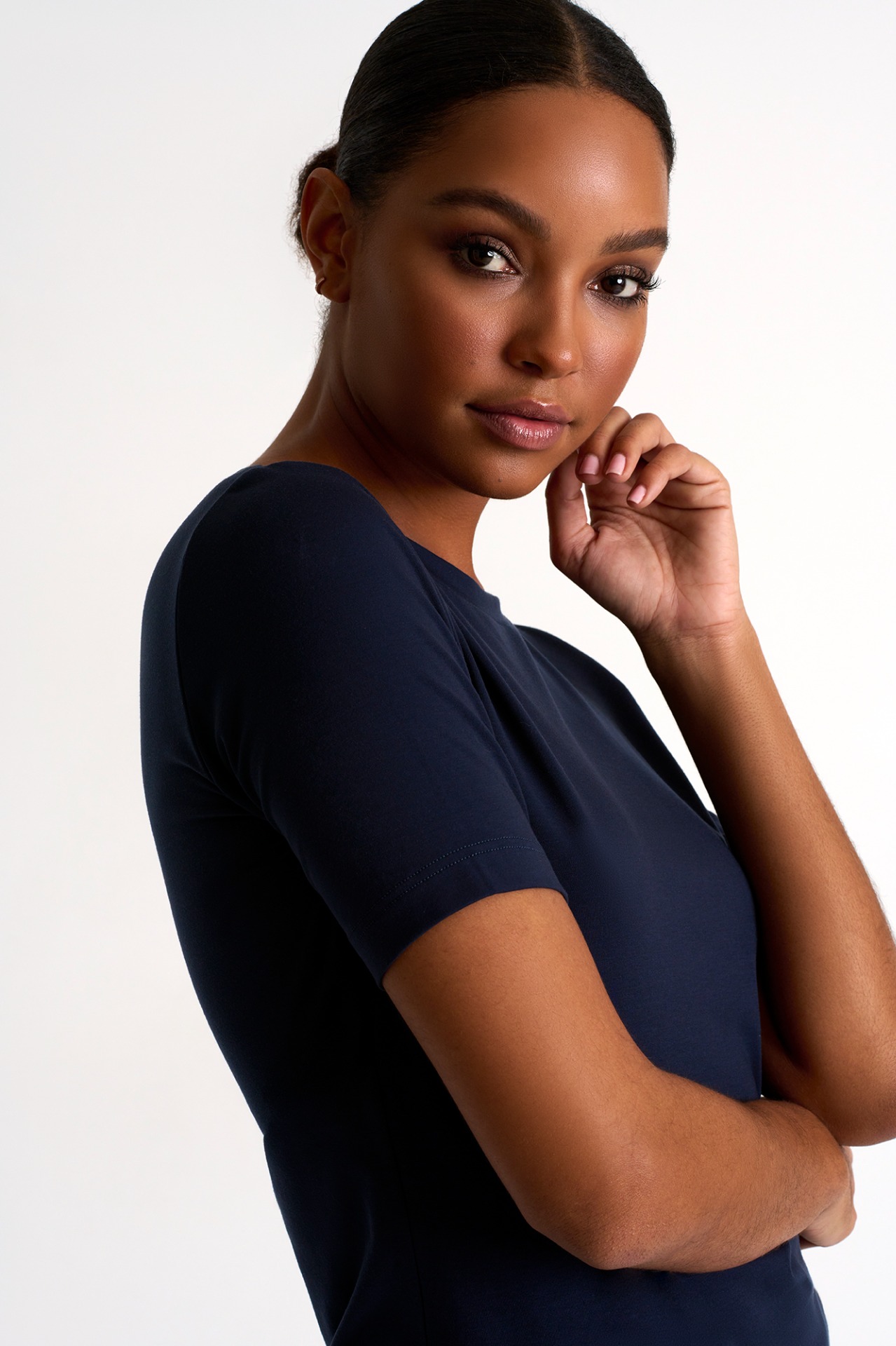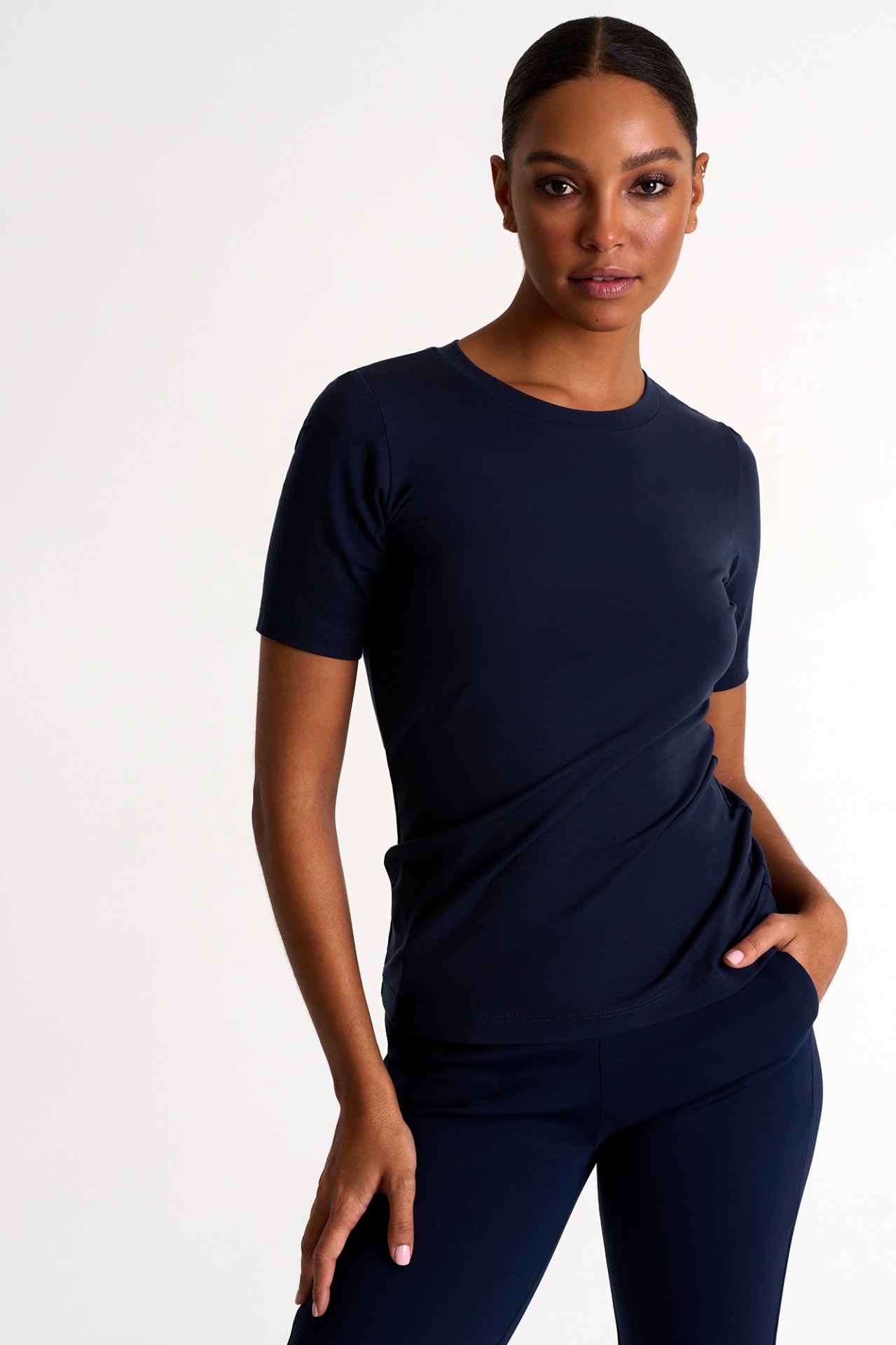 T-shirt en modal, doux, extensible et léger, offrant un confort exceptionnel avec une coupe décontractée. Parfait pour un look minimaliste et polyvalent.