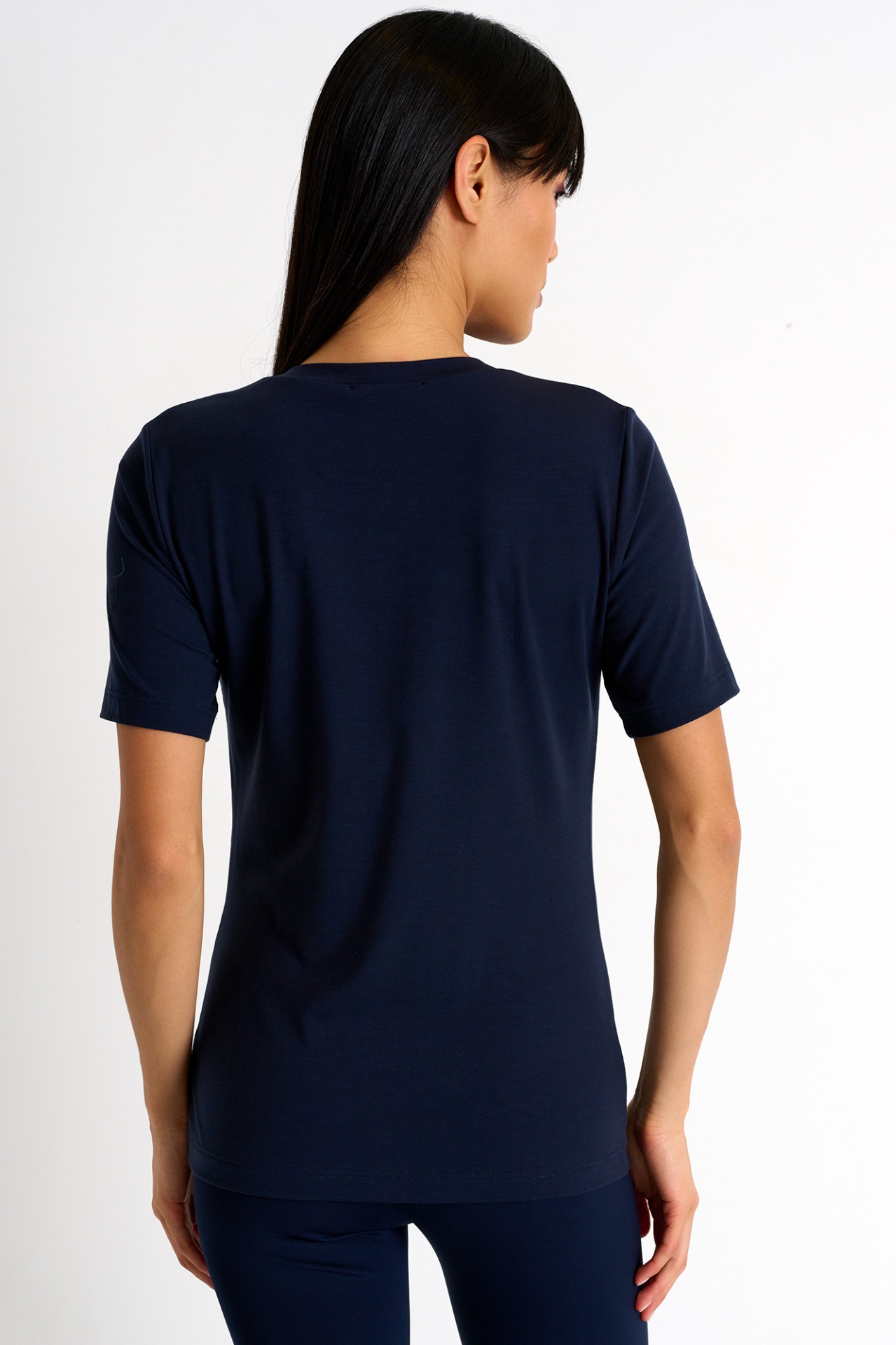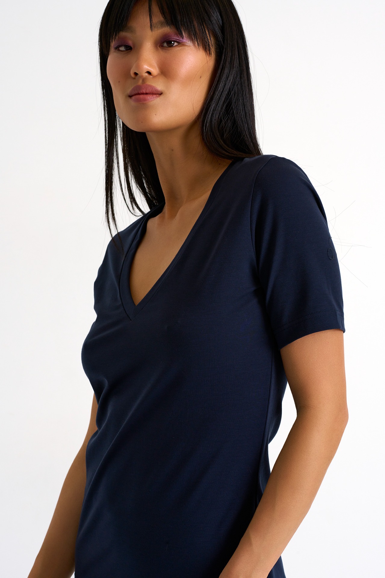 T-shirt en modal à col V, doux, extensible et léger, offrant un confort exceptionnel avec une coupe décontractée. Parfait pour un look minimaliste et polyvalent.