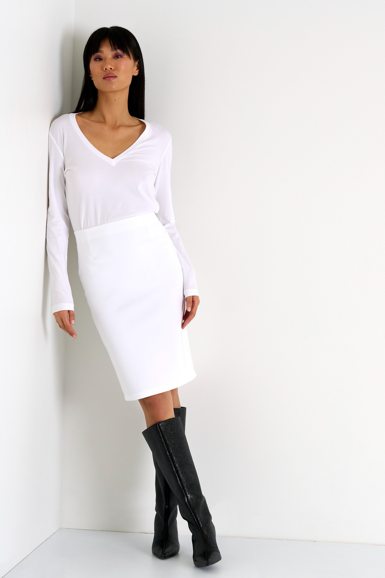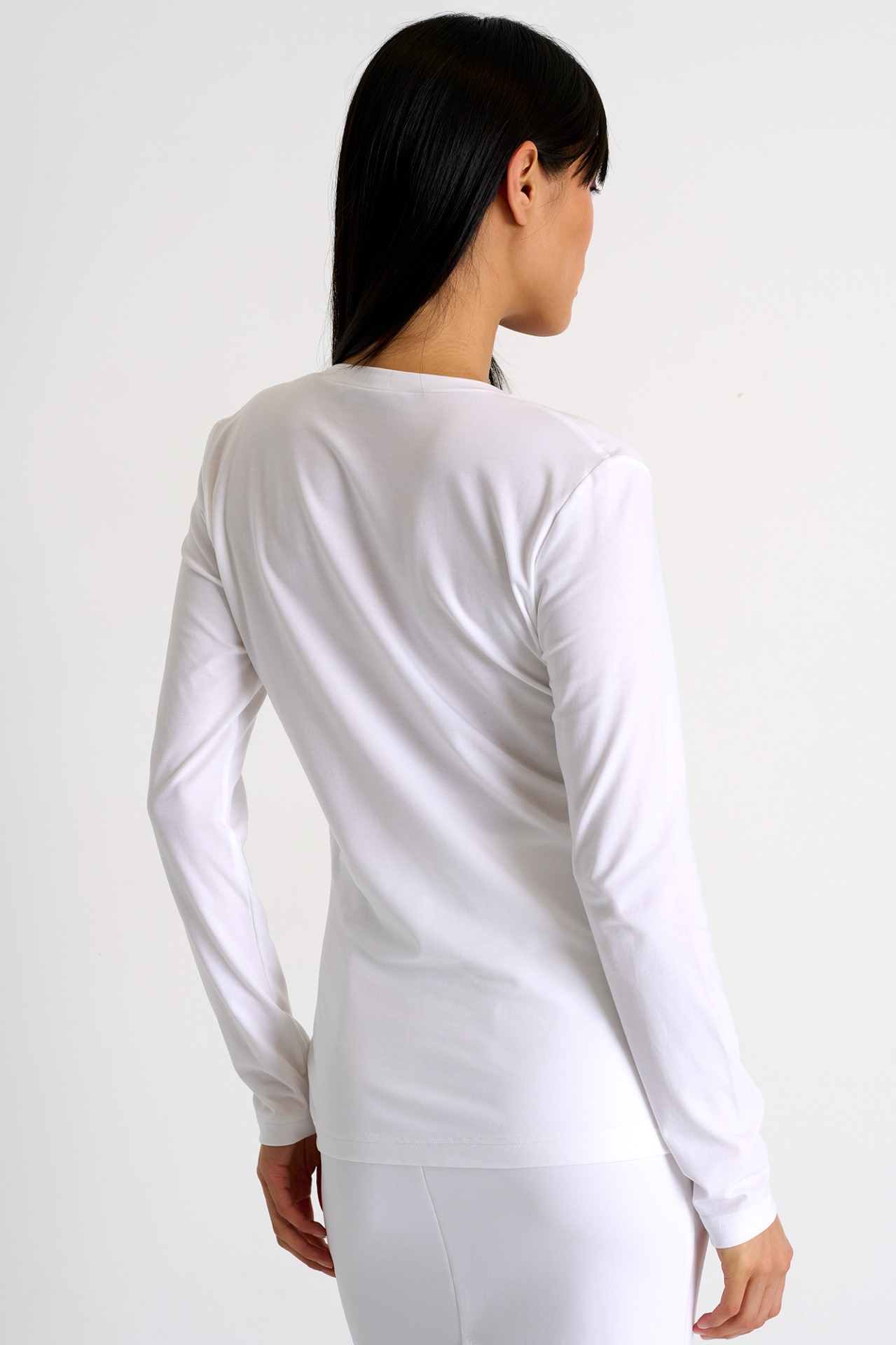 Haut à manches longues en modal à col V, doux, extensible et léger, offrant un confort exceptionnel avec une coupe décontractée. Parfait pour un look minimaliste et polyvalent.