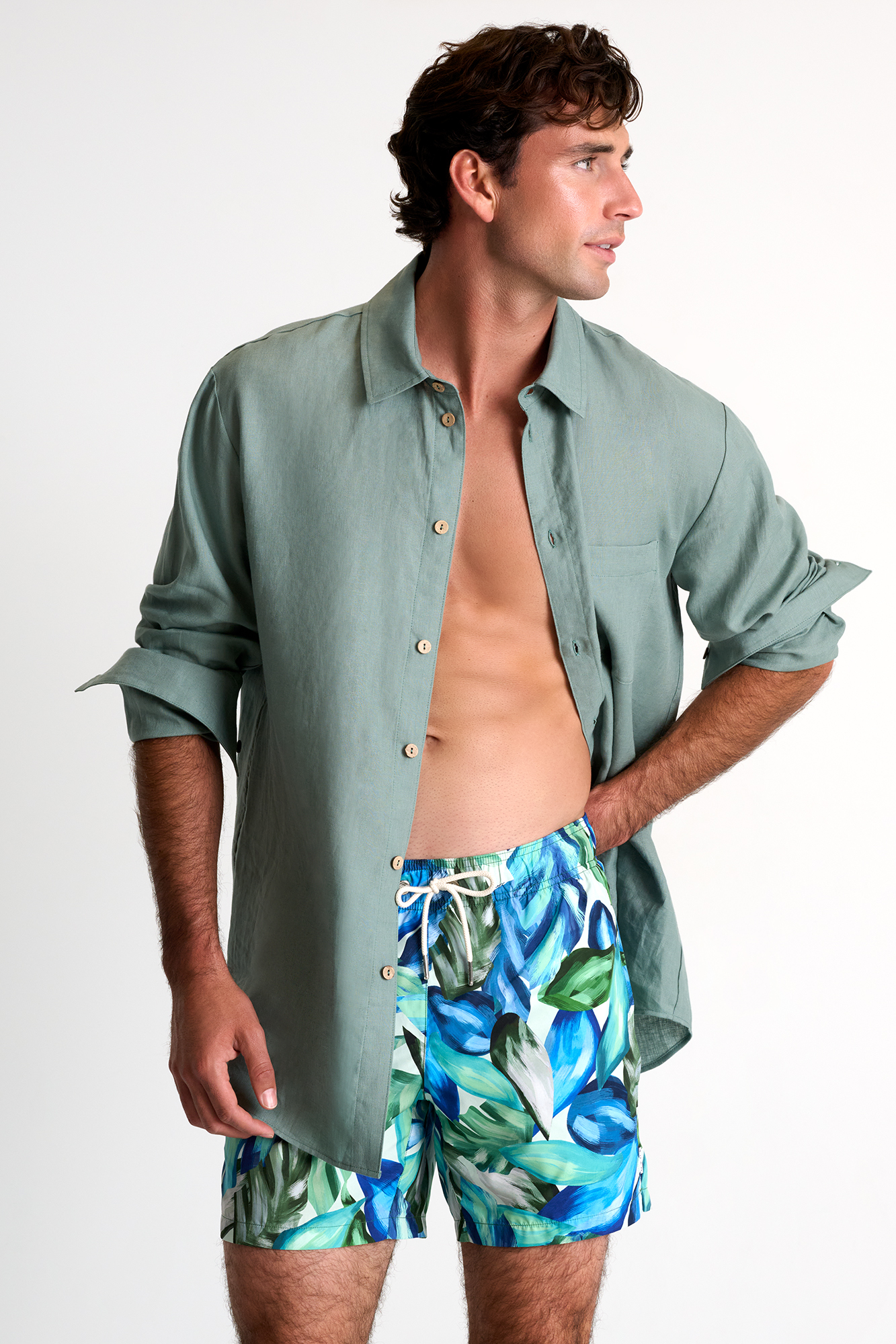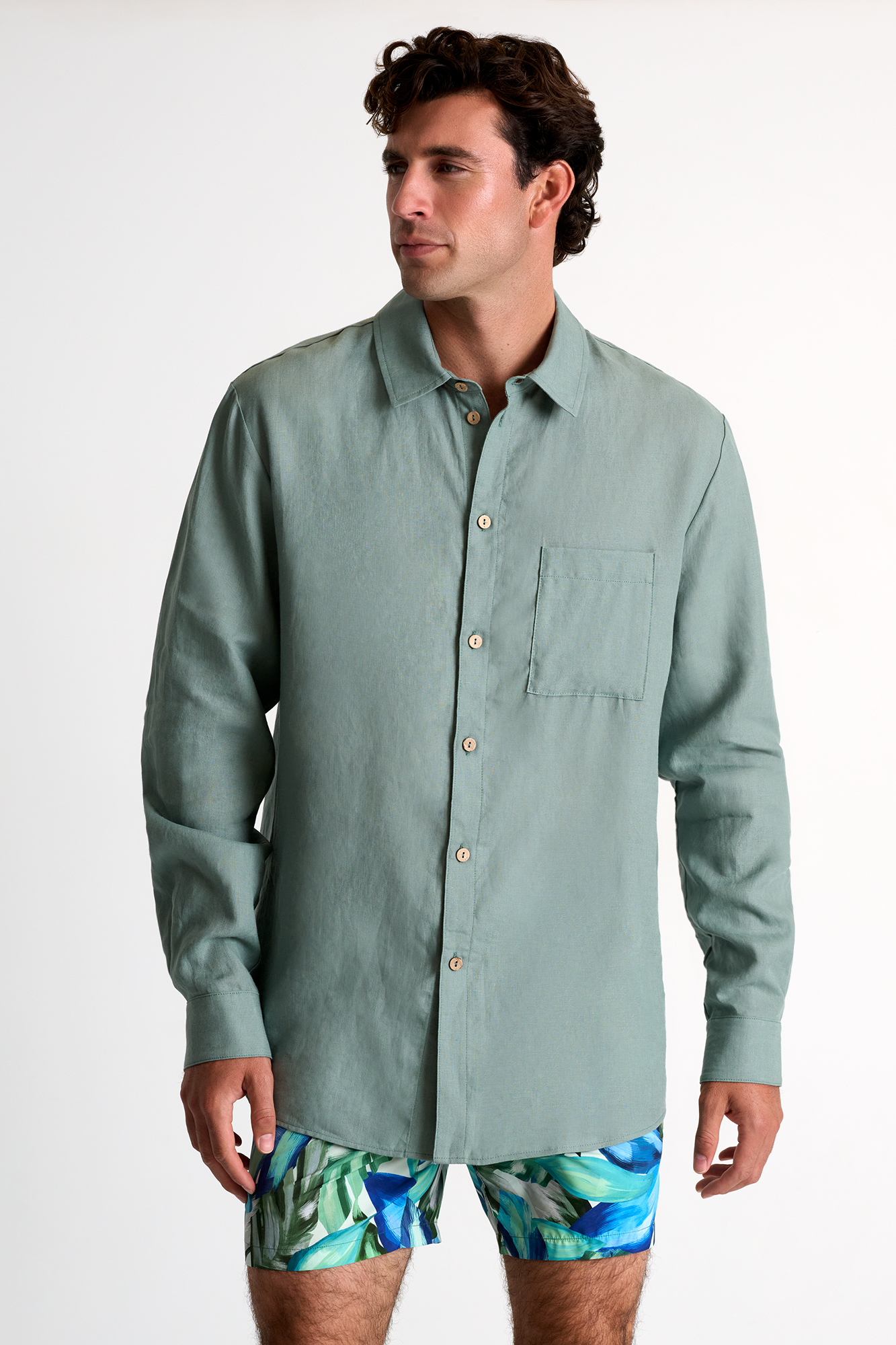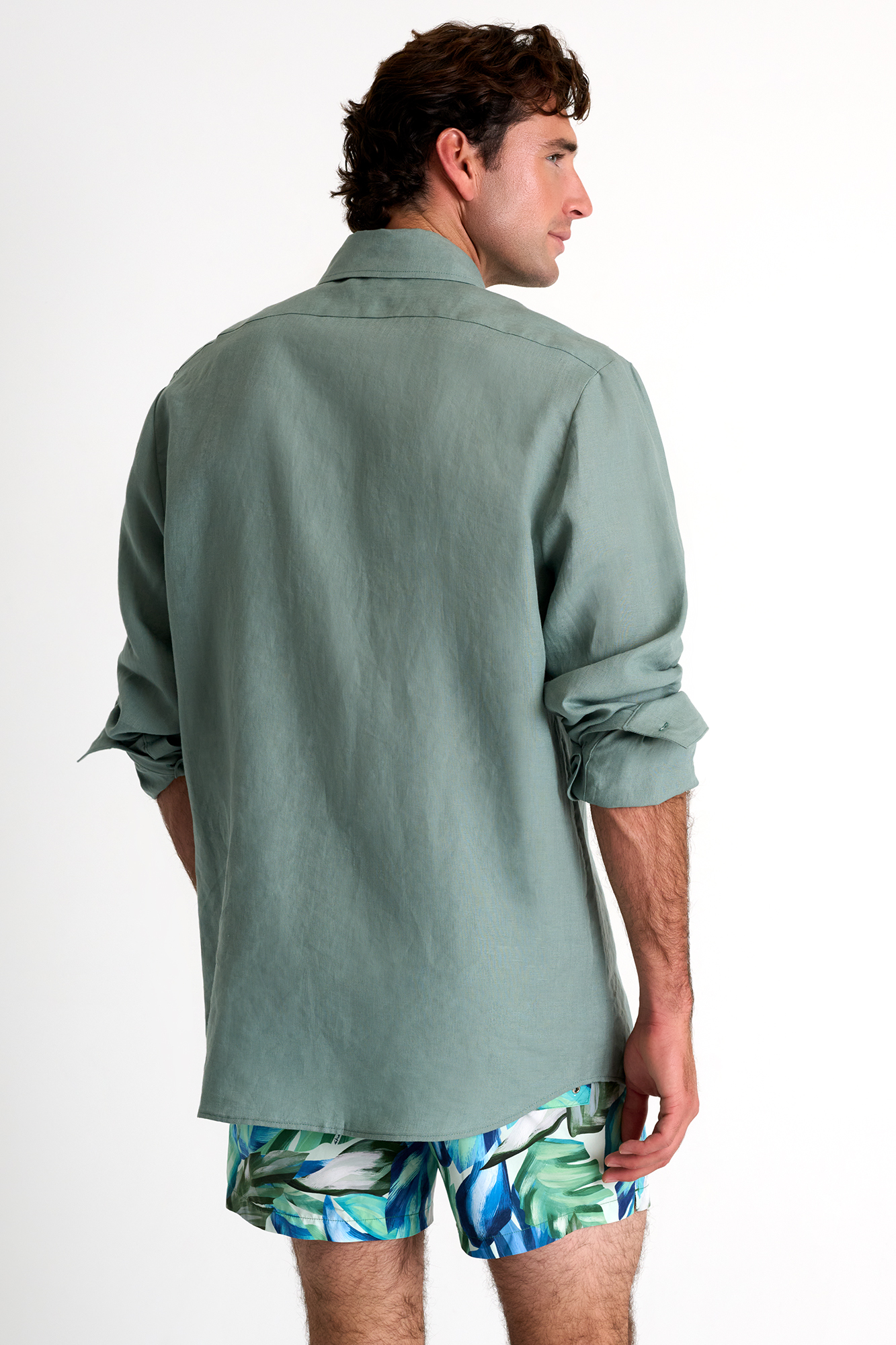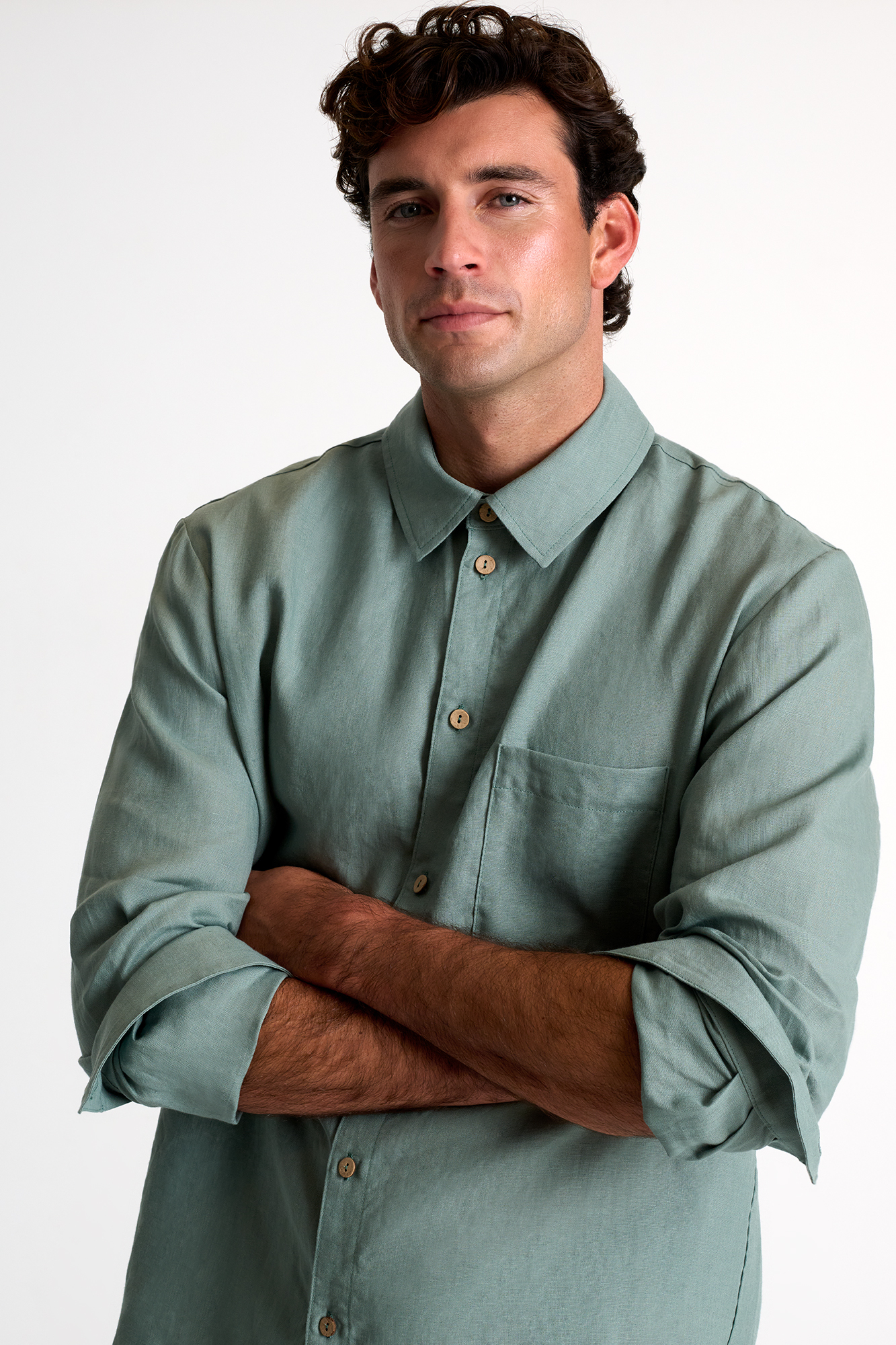 This classic linen shirt featuring long sleeves and a traditional collar is meticulously crafted to elevate your style with its timeless elegance.