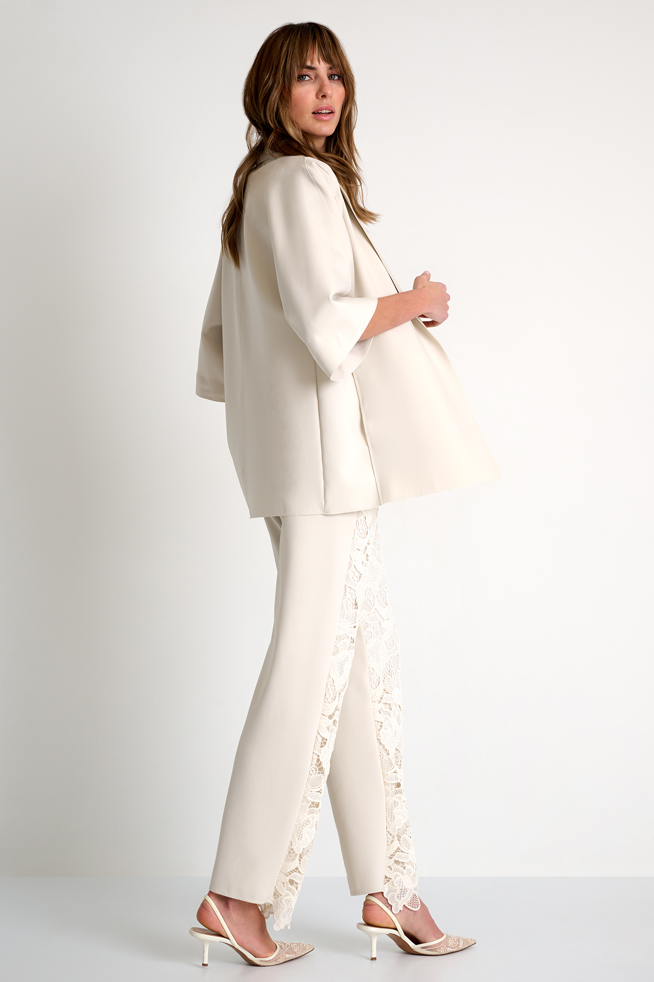 Elegant and luminous, these floral guipure lace pants embody contemporary sophistication. The richly textured openwork pattern creates a refined interplay of dimension and lightness, adding depth to the silhouette.
